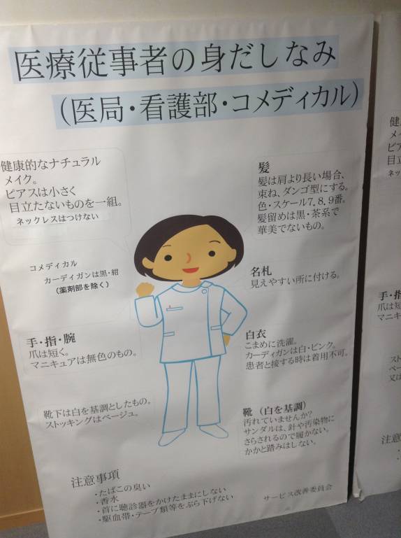 Это стандарт внешнего вида медсестры одной из клиник Японии. Сеть клиник по всей стране имеет международный сертификат качества. Прописано все начиная от прически и тона краски для волос до цвета носков. Ни у кого нет мысли идти вразрез в внутренними правилами компании.