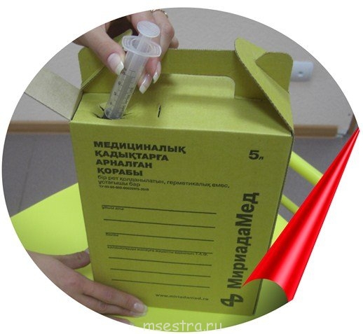 Если шприц без дезинфекции его тогда поместить в мягкий желтый пакет(опять же на дому), закрыть его ,а на другом адресе открыть и второй шприц...вроде нарушение. Тогда получается надо вторая емкость, которая закрывается?(нр просто желтое ведерко на 0,5л)