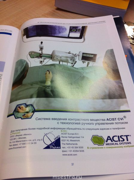 Так еще для самих себя , без прихода прокурора хотим разобраться и наладить работу. ТСТ - это международный курс по рентгенэндоваскулярной диагностике и лечению. Там проходит обучение врачей и сестер (сестринская секция идет 2 дня). В этом году там был представлен "чудо-аппарат". В комплексе она называется система введения контрастного вещества ACIST CVI с технологией ручного управления потоком. Сделала запрос по стоимости - 3 млн. рублей. Денег в этом году на этот аппаратик нет, не запланированы. Включусь в следующий год. Мне их нужно, как минимум 2, а в идеале 4 - на 2 операционные. Боюсь, только, что наши врачи поработают разок и вернуться на круги своя. У остальных, так же все, как и у нас. Никто нового ничего не сказал. Значит, беда одна у всех, просто никого она пока не коснулась.bmv:Когда-нибудь придет прокурор, и объяснит, как было надо.
