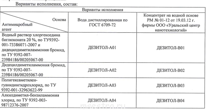 Каков состав? Ниже приведена выписка из протокола токсикологических испытаний, проводившихся при регистрации в качестве ИМН Покрытия антимикробного профилактического «ДЕЗИТОЛ» по ТУ 9398-001-99938243-2012