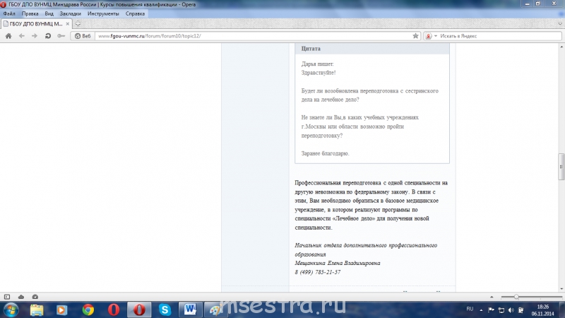 Извините что вмешиваюсь, но все же . При поиске на данный вопрос, обнаружила на сайте ГБОУ ДПО ВУНМЦ Минздрава России следующий ответ, правда 2013 год, но по-моему, там ничего не изменилось. Насколько я понимаю, само данное заведение является основоположником различных программ последипломного образования. Может вам там уточнить по данному вопросу.XimuRa:Написал в Минздрав и в Минобр (федеральные) с вопросом о судьбе переподготовки на фельдшера, откуда пришел ответ, совпадающий с тем, что Вы писали выше (что каждый колледж пишет сам программу и т.д.) А Минобр вообще отписал что данный вопрос их не касается, что в общем-то логично.При обращении в наш медицинский колледж за разъяснениями я их не получил толком. Такое ощущение, что там они сами ничего не знают, а просто, не хотят что ли больше заниматься переподготовкой. Ссылаются на какой-то приказ министерства образования, который запретил обучение по программе переподготовки "Лечебное дело", приказ показать отказываются, письма, которые я получил с вышеназванных министерств, бегло читают и говорят что "все это неправда" и в таком духе, т.е. конструктива никакого. На мои утверждения, что другие колледжи нормально сейчас учат людей по этим программам, опять же ничего адекватного не услышал, в основном, "до первой проверки", "это не законно" и т.д. Когда им там "спустят новую программу" ответить не могут.В общем есть твердое намерение разобраться во всей этой клоаке, потому что, ну согласитесь, это бред какой-то. Я конечно понимаю что у нас отрезанная провинция, вороти что хоти, но мера тоже должна быть.Валелий Валерьевич, подскажите пожалуйста, на какие норм.правовые акты мне опираться при обращении в различные органы (т.е. чем регулируется проведение обучения по таким программам переподготовки); Вы не могли бы привести в пример несколько мед. средних учебных заведений, где в данный момент проводится обучение по программа переподготови "Лечебное дело" (кроме Вашего колледжа, про него я знаю)). С радостью выслушаю любой Ваш совет, что делать и как дальше быть.