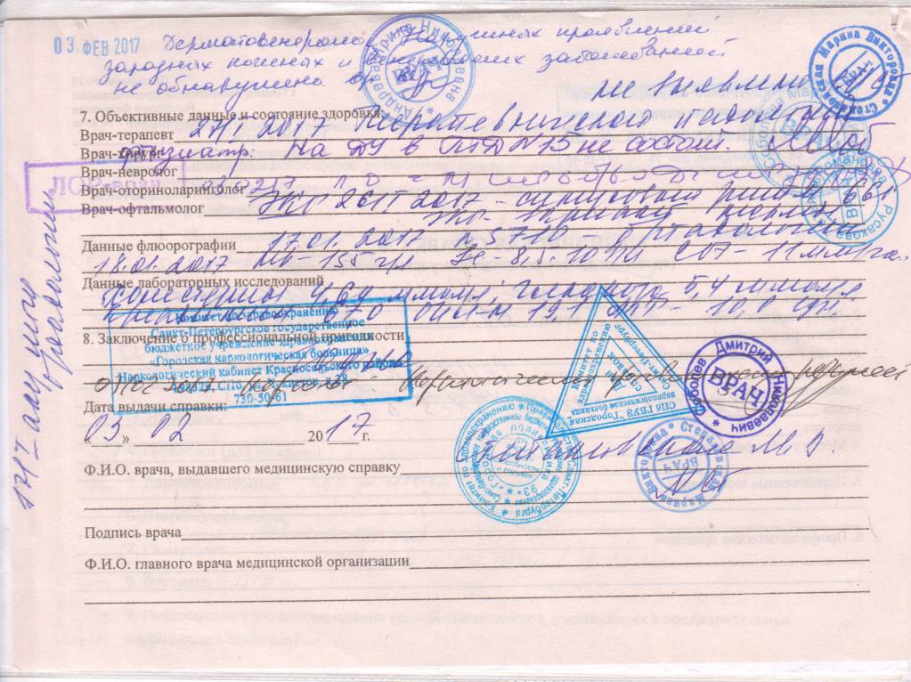 Я уже всех прошла, остались мазки на гонорею и психиатр.