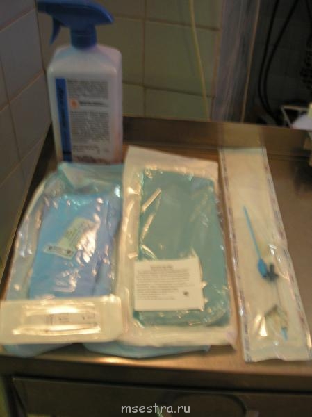 У нас сестра готовится на пункцию центральной вены вот таким набором: антисептик кожный, анестетик, шприцы, натрия хлорид (в столе манипуляционном на фото не видно), набор КПРВ, "шовный" набор, нить капроновая, пеленка стерильная из нетканного материала.