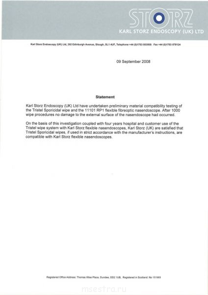 Шторц, естественно, подтвердил лишь то, что 30 секундное нанесение пенки и растирание ее салфеткой по эндоскопу не навредит материалам эндоскопа. То, что эта пенка пригодна для ДВУ или других видов дезинфекции из предоставленного Шторцем письма