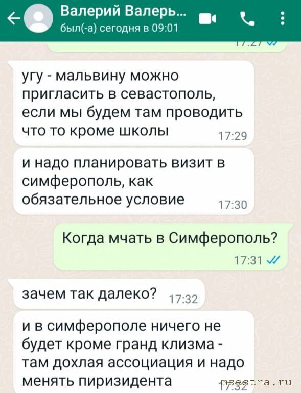 Ж.В., специально для вас тут продублирую. Сегодня ночью коллеги скинули, диалог не мой,могу публиковать смело,с чистой совестью.