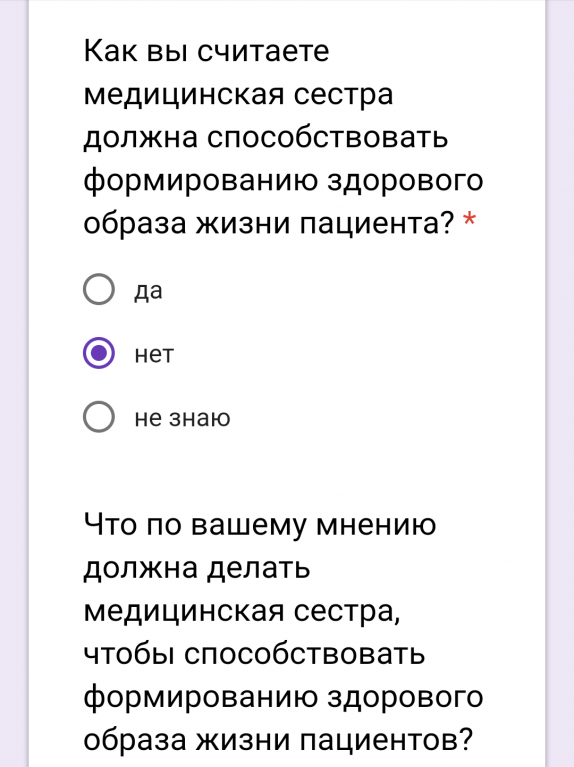 Мы изучаем мотивацию медицинского персонала в отношении формирования ЗОЖ населения. Анкета АНОНИМНАЯ и в ней ВСЕГО 4 вопроса. Просим уделить минуту Вашего времени, чтобы ответить на них, пройдя по ссылке в документе ниже (это гугл-диск, который дает возможности именно для анонимного проведения опроса). Заранее благодарны!